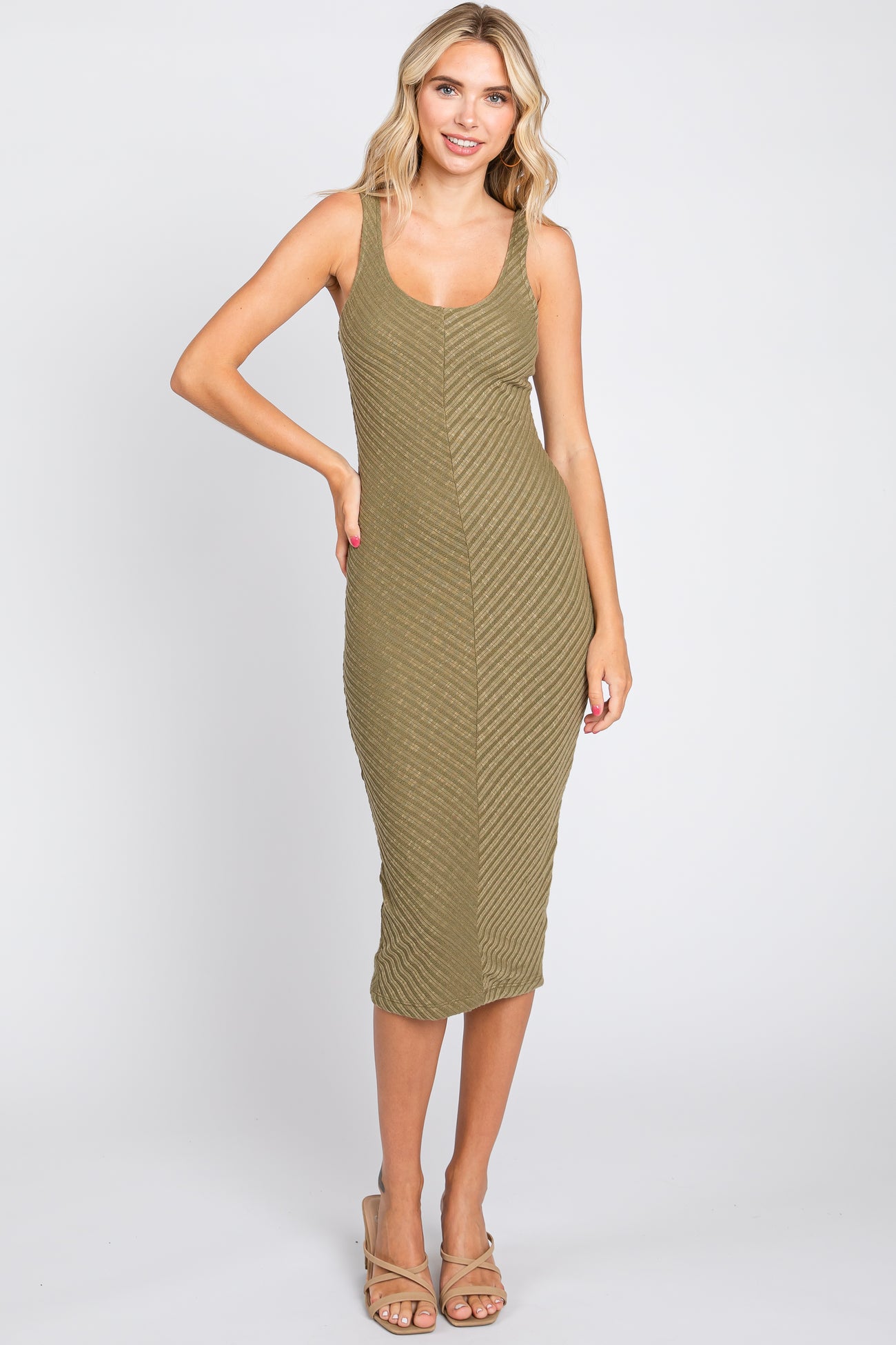 Olive Textured Knit Sleeveless Maternity Midi Dress