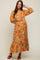 Orange Floral 3/4 Sleeve Maternity Midi Dress
