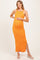 Orange Ribbed Fitted Side Slit Maternity Midi Dress
