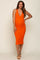 Orange Ribbed Knit Fitted V-Neck Maternity Midi Dress