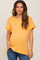 A solid hued maternity top featuring short sleeves and a rounded neckline.