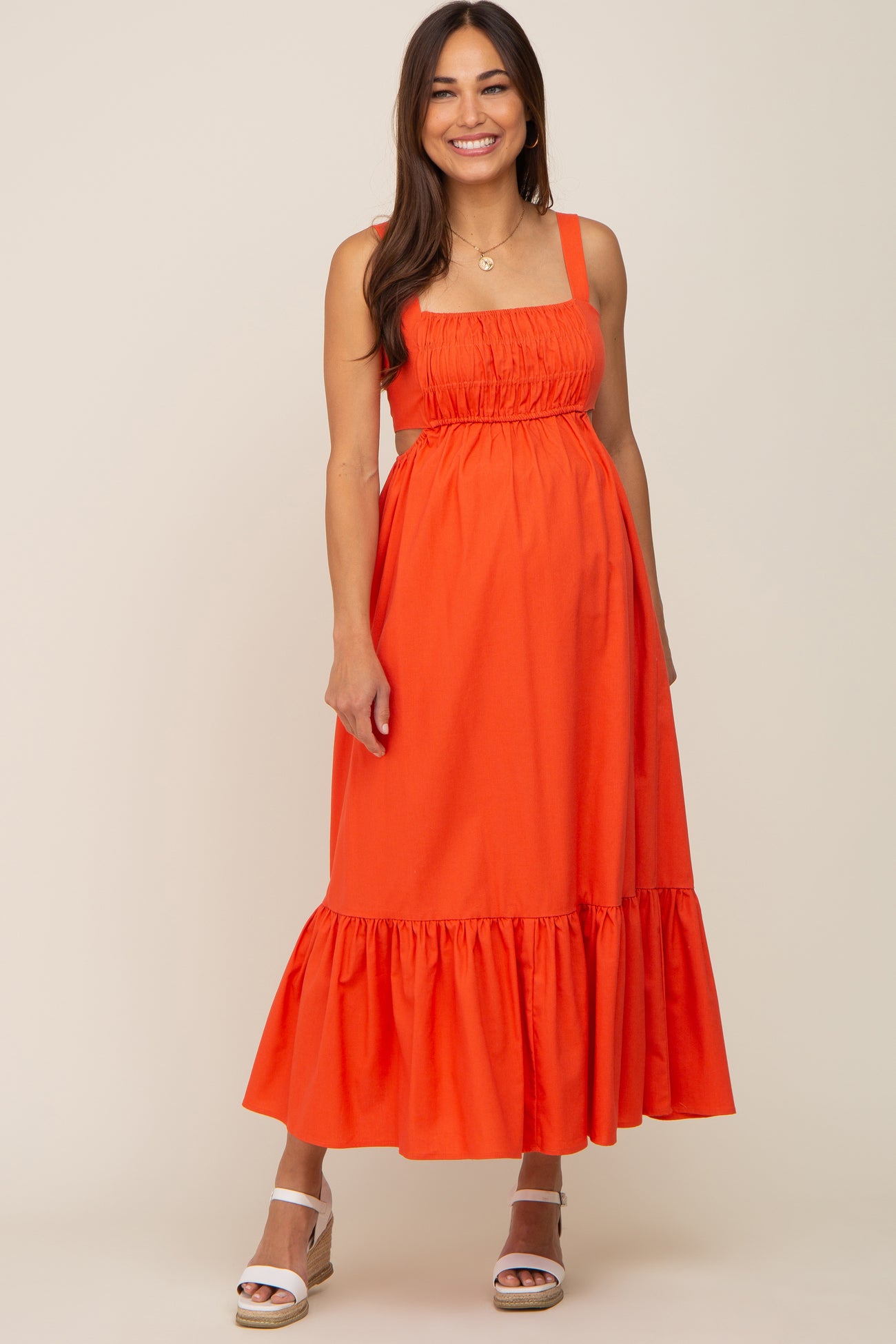 Orange Sleeveless Cutout Ruffle Hem Maternity Maxi Dress