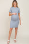 A sleeveless ribbed knit maternity dress. Fitted. Square neckline.