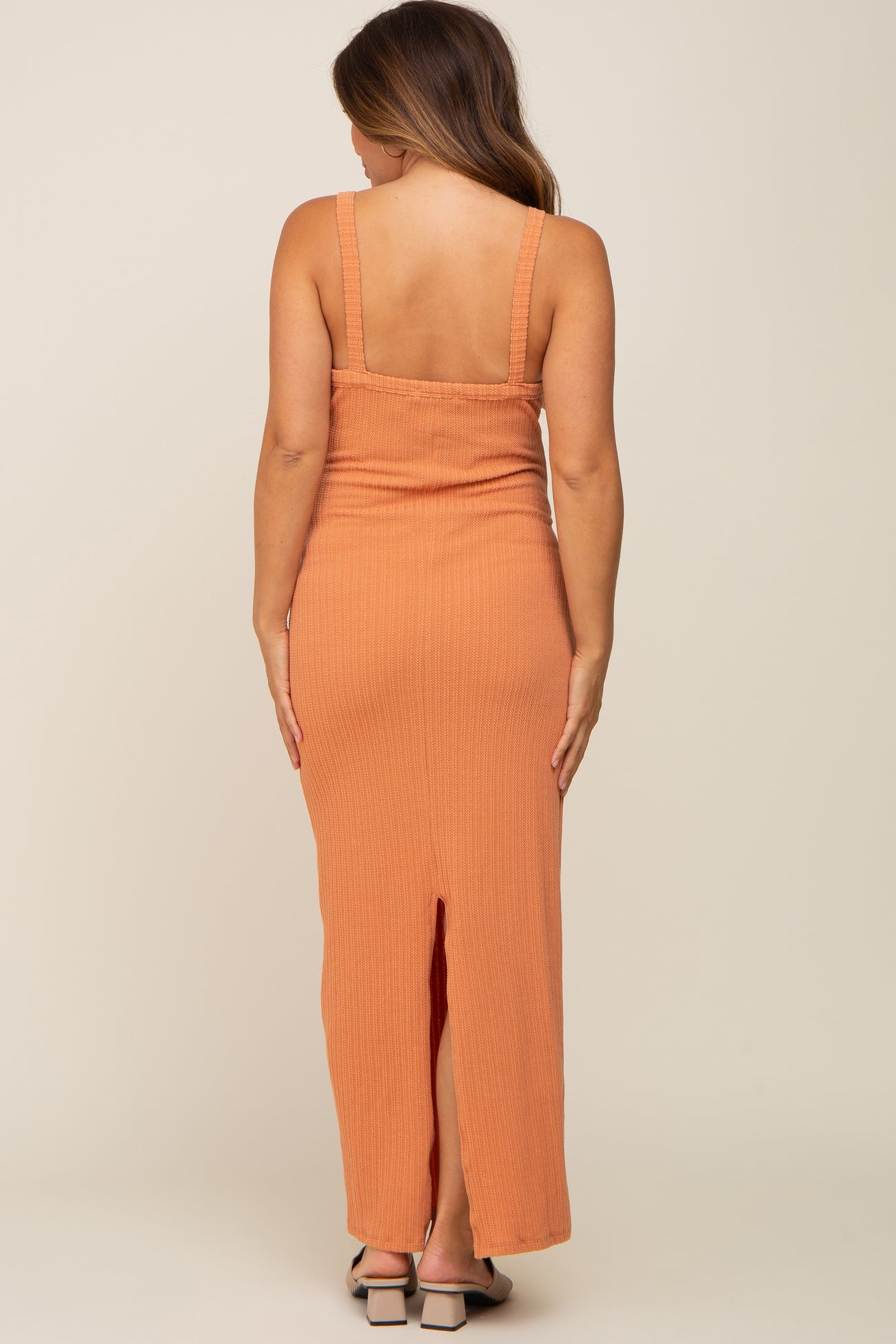 Orange Sleeveless Ribbed Maternity Maxi Dress