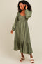 Orange Tropical Floral Shoulder Tie Tiered Maternity Midi Dress
