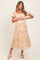 Peach Floral Pleated Bust Puff Sleeve Maternity Midi Dress