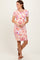 Peach Floral Short Sleeve Ruched Dress