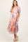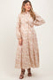 Peach Leaf Print Smocked Mesh Overlay Maternity Dress