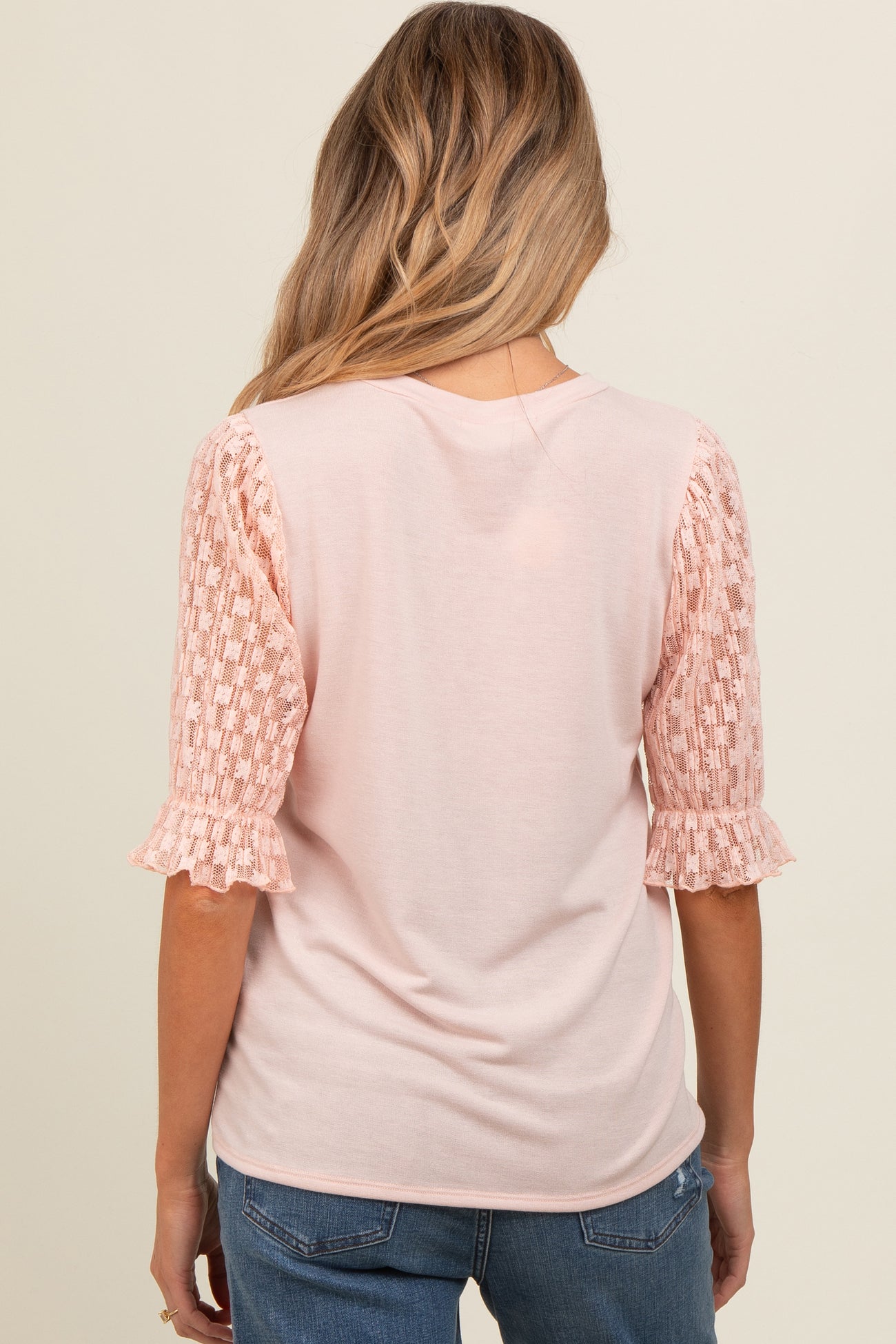 Peach Mesh Floral Puff Sleeve Maternity Top