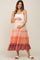Peach Ombre Ruffle Tiered Shoulder Tie Maternity Midi Dress