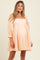 Peach Plaid Overlay Bubble Sleeve Maternity Dress