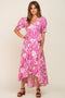 A printed maternity midi dress featuring a button down front, side pockets, a tiered body and a collared neckline.