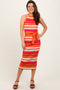 Peach Solid Ribbed Color Block Short Sleeve Maternity Tunic Top