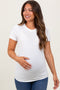 Peach Solid Ribbed Short Sleeve Round Neck Basic Maternity Top