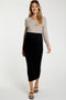 A rib knit midi dress with short sleeves, a u notched neckline, and an a-line skirt.