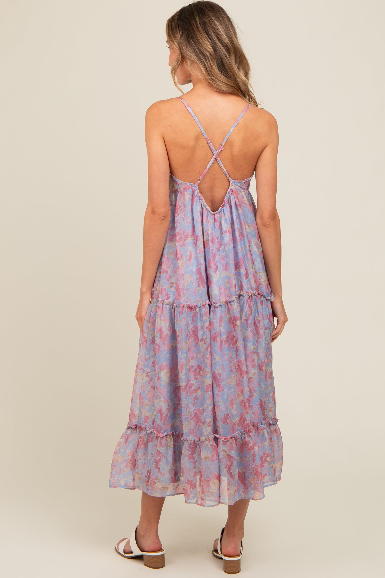 Periwinkle Abstract Floral Crisscross Back Maxi Dress