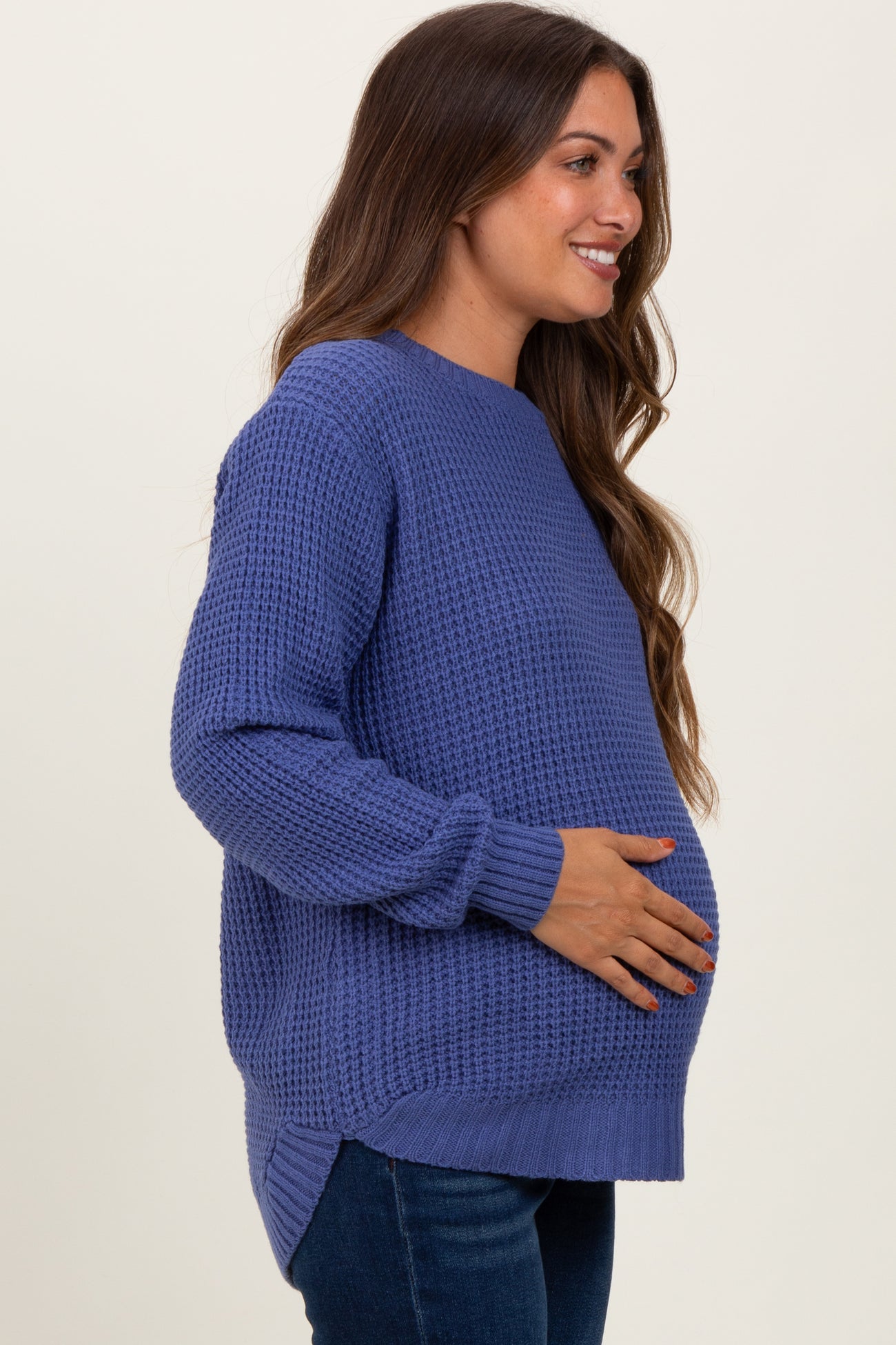 Periwinkle Waffle Knit Rounded Hem Maternity Sweater