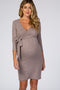 An ultra soft, brushed knit nursing fitted dress featuring a v-neckline with a wrap front and side tie detailing for easy access. Also features 3/4 length sleeves.