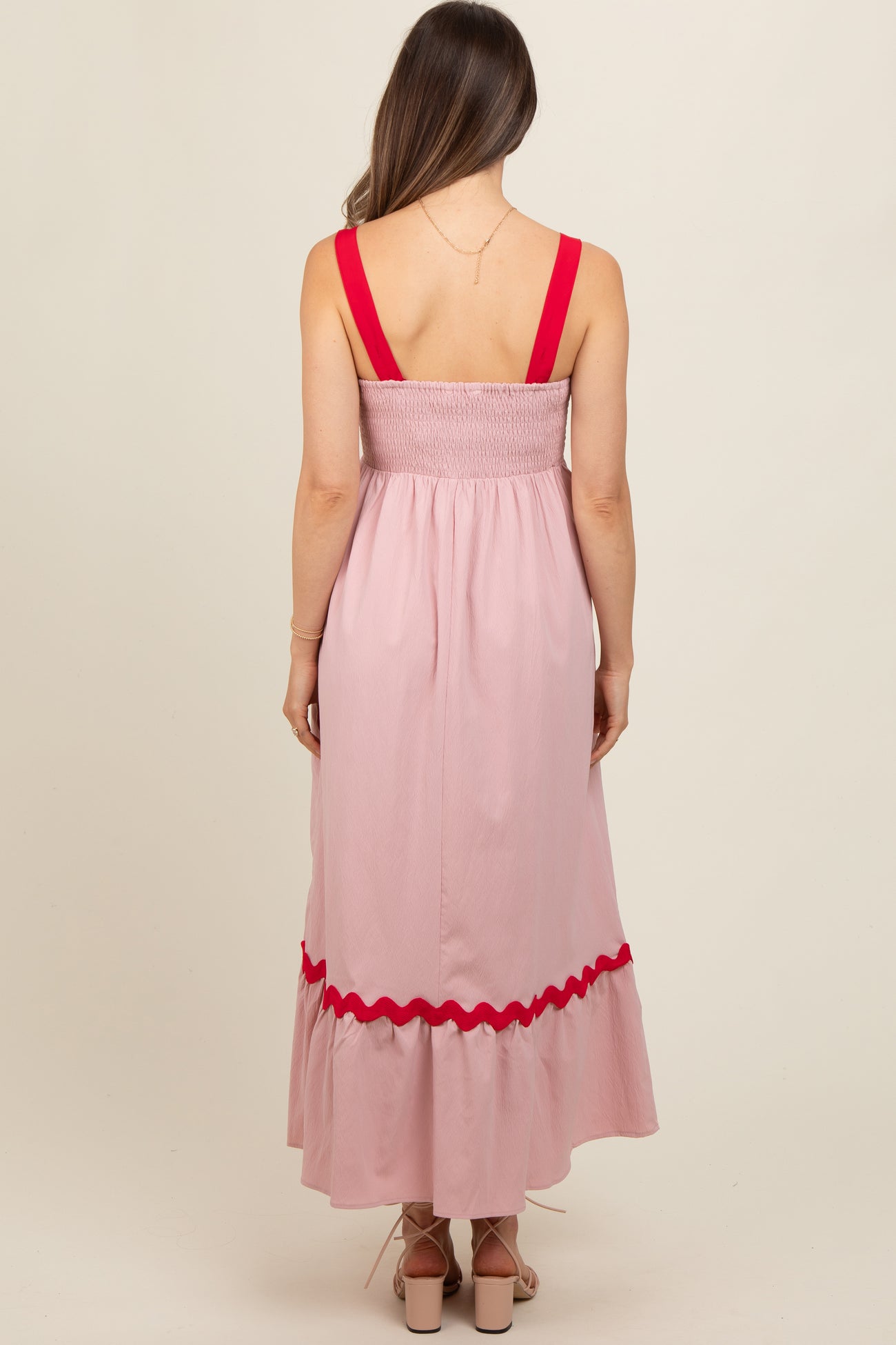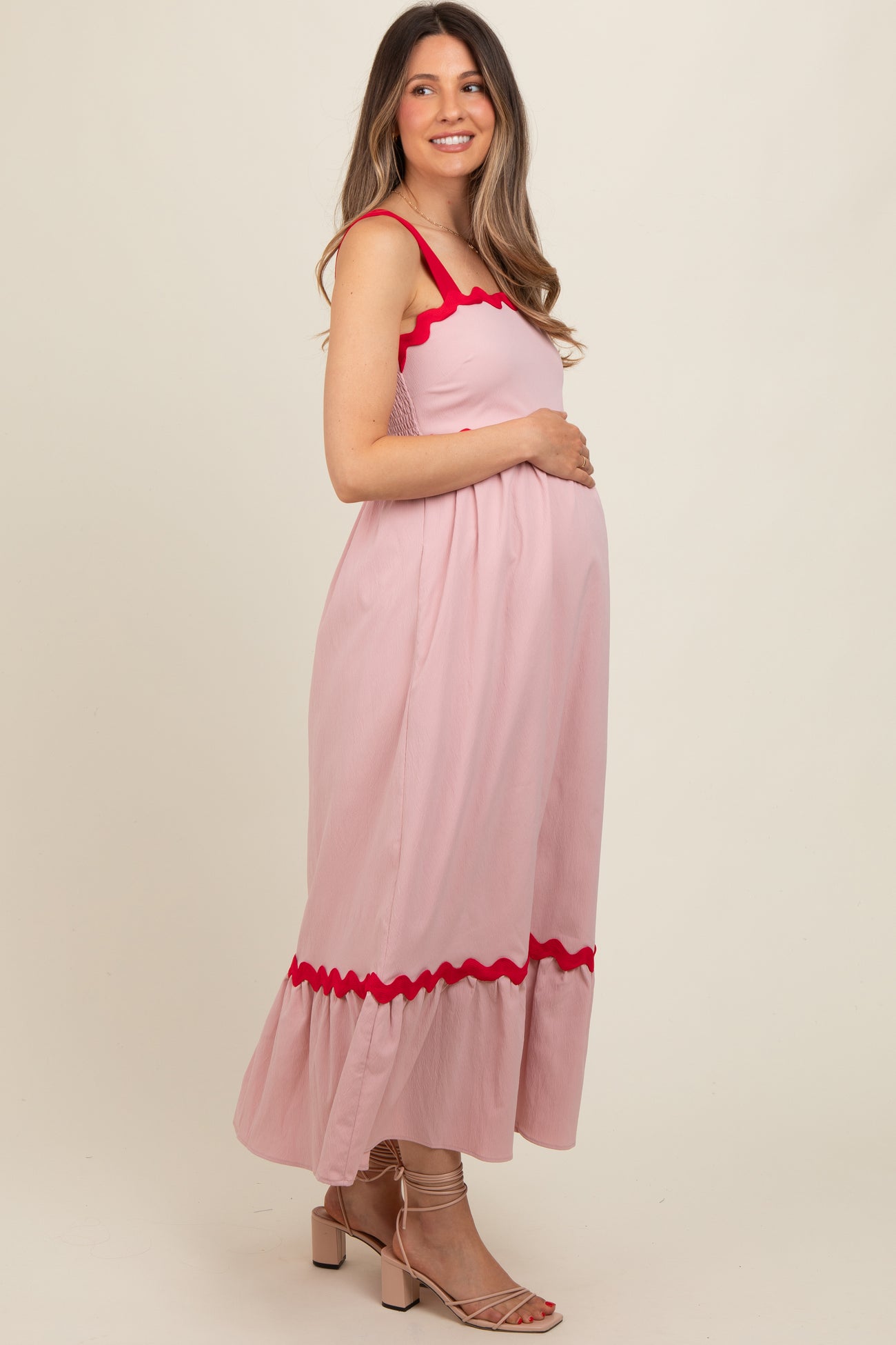 Pink Contrast Trim Maternity Maxi Dress