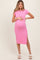 Pink Crew Neck Bubble Knit Ribbed Maternity Midi Dress