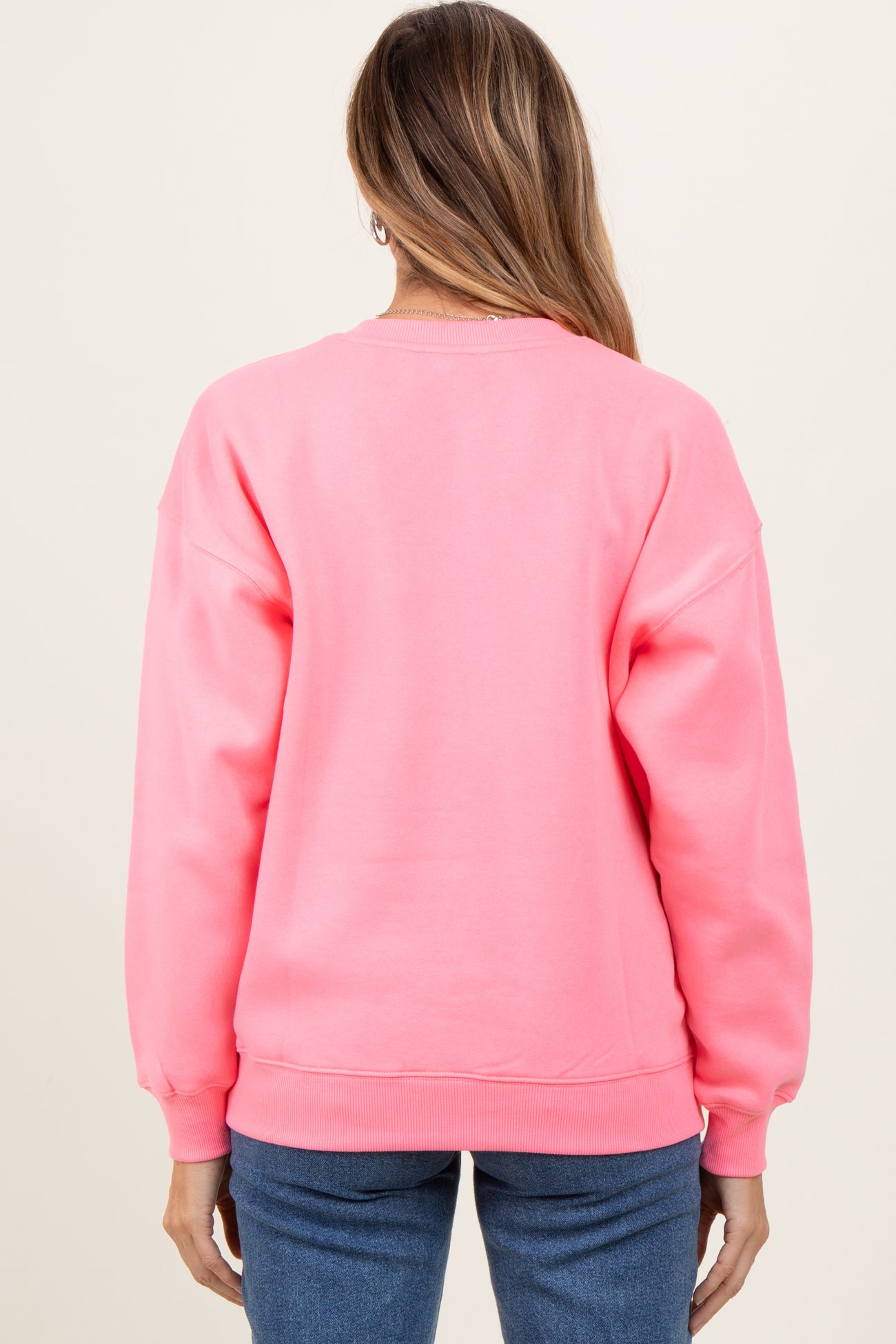 Pink Fleece Crew Neck Relaxed Fit Sweatshirt