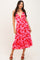 Floral print dress with a halter neckline, back tie, and tiered skirt.