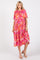 Pink Floral Satin Ruffle Short Flutter Sleeve Midi Dress