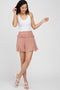 A floral maternity mini skirt featuring a smocked waist and ruffle accents. Short style lining.