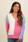 Cozy up in this Pink Fuzzy Knit Colorblock Maternity Sweater, designed to keep you comfortable and stylish throughout your pregnancy. Featuring a flattering V-neck and a relaxed fit, this sweater easily accommodates your growing belly. The playful colorblock design combines soft pink, white, mint green, and lavender hues for a fresh, trendy look. Crafted from a plush, fuzzy knit fabric, it offers warmth and softness against your skin—perfect for chilly days. Pair it with your favorite maternity jeans for an effortlessly cute, everyday outfit!