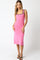 Pink Knit Contrast Trim Square Neck Midi Dress