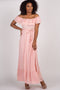 Pink Off Shoulder Tassel Tie Maternity Maxi Dress
