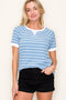 Pink Ribbed Colorblock Detail Short Sleeve Top