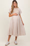 Pink Ribbed Knit Contrast Top Maternity Midi Dress