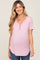 A solid hued maternity top featuring short sleeves, a v-neck with button details and ribbed details.