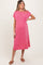 Pink Ribbed Short Sleeve Front Pocket Maternity Midi Dress