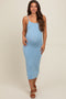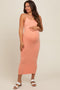 Pink Ribbed Side Slit Sleeveless Maternity Midi Dress