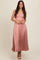 Pink Satin Pleated Midi Dress