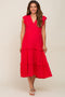 A maternity dress featuring an off-shoulder neckline, a smocked elastic top, long puff sleeves and double lining.