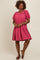 Pink Textured Tiered Puff Sleeve Dress