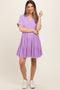 A lightweight linen maternity dress with a split v-neckline, a collar, and a tiered body.