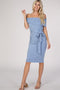 PinkBlush Blue Folded Off Shoulder Belted Fitted Maternity Dress