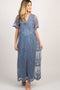 PinkBlush Blue Lace Mesh Overlay Maxi Dress