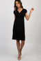 A solid hued short sleeve nursing top featuring a wrap front accent with under layer and a rounded neckline.