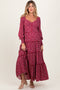 Plum Front Tie Ruffle Sleeve Maternity Midi Dress