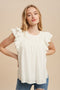 A one piece maternity swimsuit featuring flutter sleeves, a cutout knotted front, a back cutout, tie back closure and removable padding at the bust.
