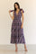 Purple Floral Mesh Deep V-Neck Shoulder Tie Maxi Dress