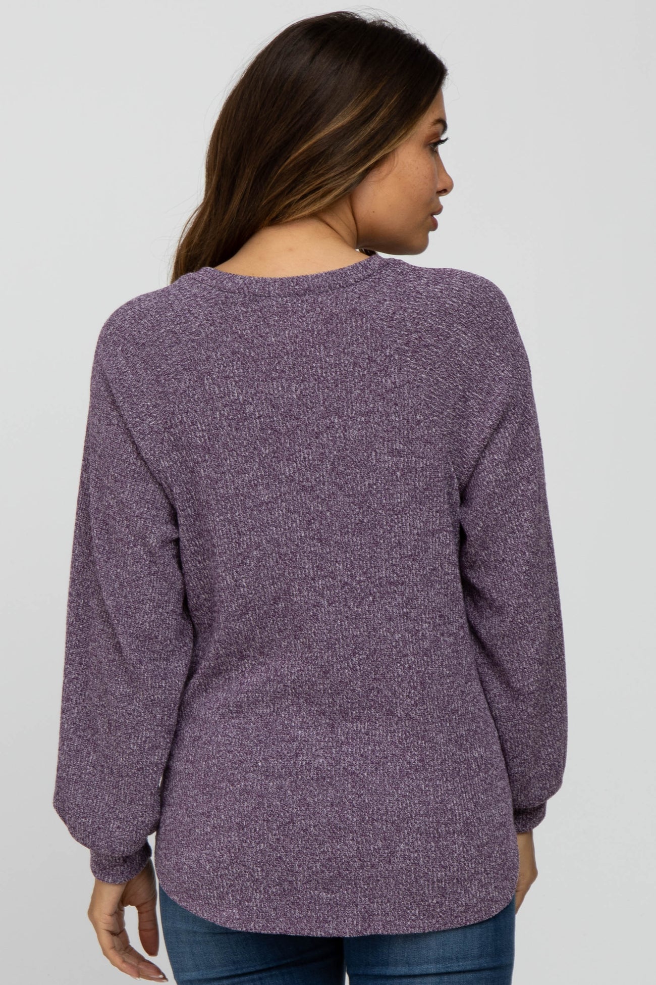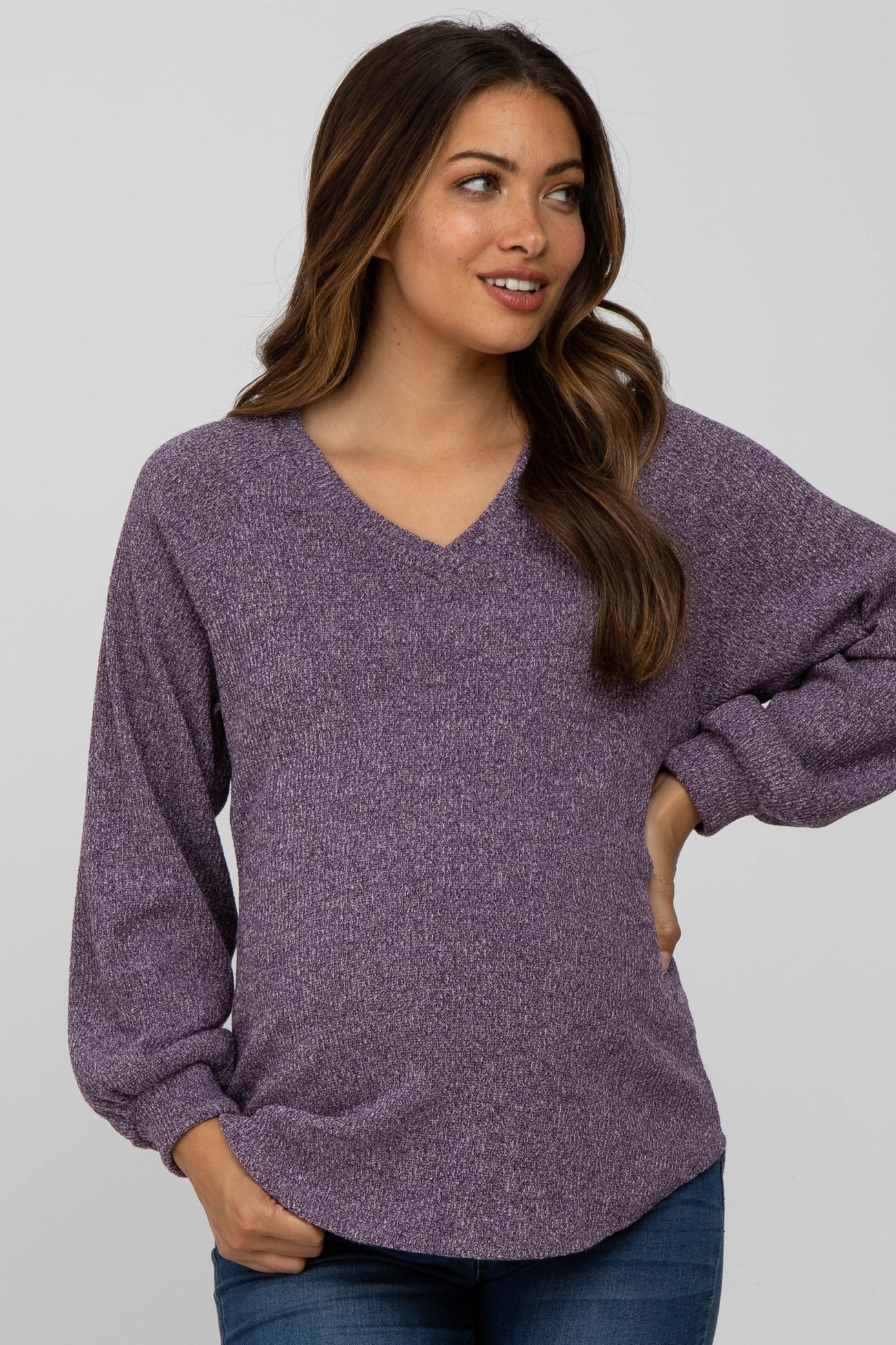 Purple Marled V-Neck Long Sleeve Maternity Top