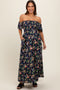 Purple Print Ruffle Long Sleeve Maternity Maxi Dress
