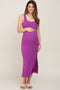 Purple Ribbed Side Slit Midi Dress
