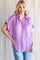 Purple Satin Button Front Collared Short Sleeve Top